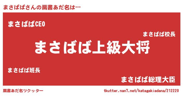 | 男性向けラノベタイトル風あだ名 | 『マサババスレイヤー』 |