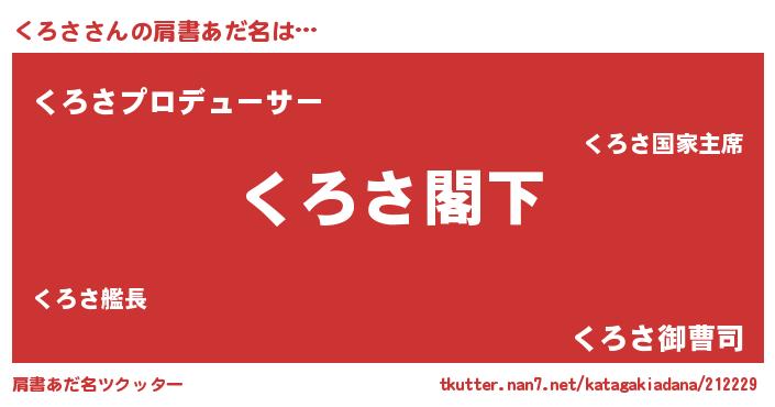 | 男性向けラノベタイトル風あだ名 | 『Re:くろさから始める異世界生活』 |