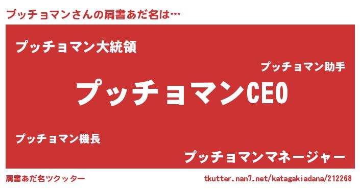 | 男性向けラノベタイトル風あだ名 | 『プッチョマンの憂鬱』 |