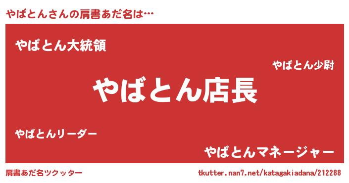 | ヒーロー風カッコイイあだ名 | 『スーパーヤバトン』『幻影騎士ヤバ』 |