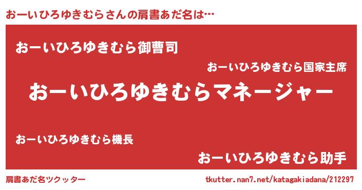 | 男性向けラノベタイトル風あだ名 | 『おーいひろゆきむらに滅ぼされるだけの簡単なお仕事です』 |