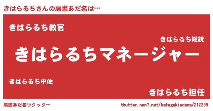 | ヘコむあだ名 | 『きはらるち(小並感)』『きはふぇ~』 |