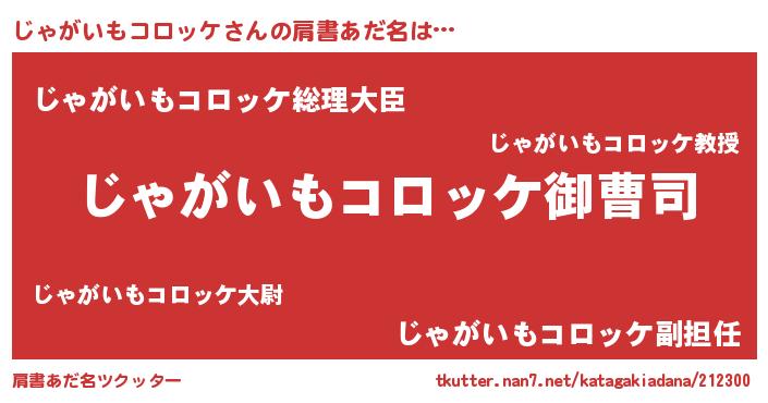 | 男性向けラノベタイトル風あだ名 | 『じゃがいもコロッケの憂鬱』 |