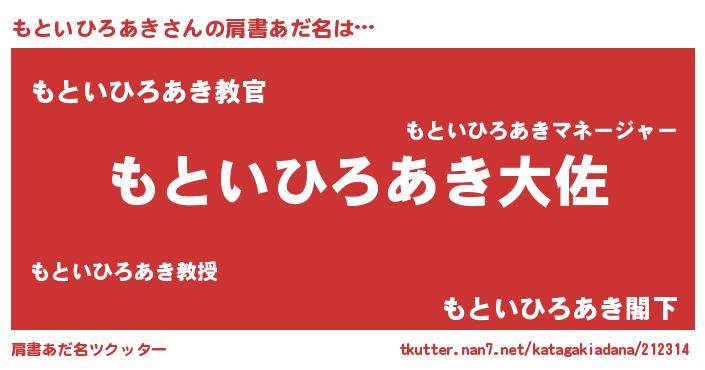 | 男性向けラノベタイトル風あだ名 | 『転生したらもといひろあきだった件』 |