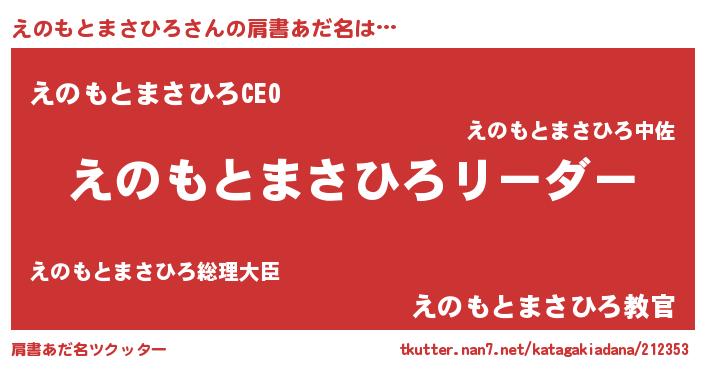 | 意味不明あだ名 | 『とにかく怪しいえのもとまさひろ』 |