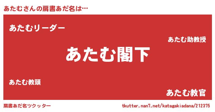 | 男性向けラノベタイトル風あだ名 | 『Re:あたむから始める異世界生活』 |