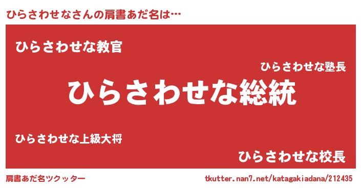 | 意味不明あだ名 | 『自称ひらさわせな』 |