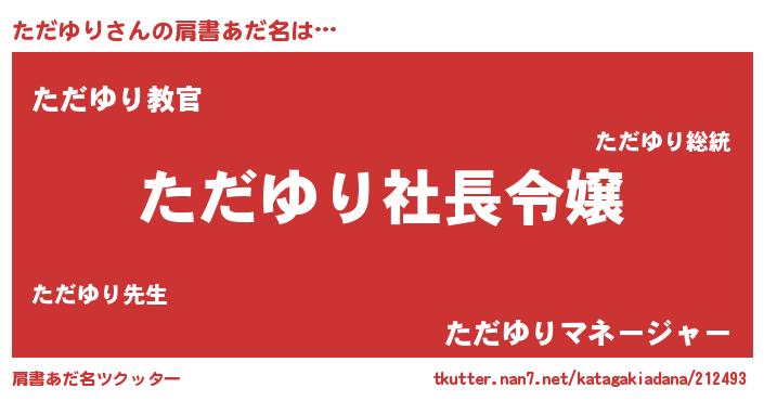 | ヘコむあだ名 | 『ただもー』『ただゆり(小並感)』 |