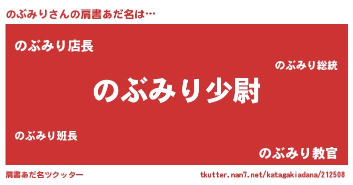 | 男性向けラノベタイトル風あだ名 | 『ノブミリスレイヤー』『のぶみりの憂鬱』 |