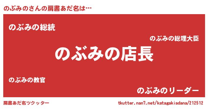 | ヘコむあだ名 | 『のぶにゅー』『のぶっぺ』『つくし』 |