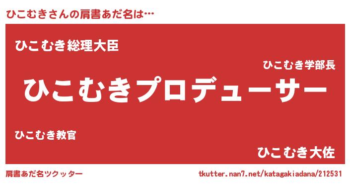 | ファンタジー風あだ名 | 『エターナルヒコムキー』『クインヒット』 |