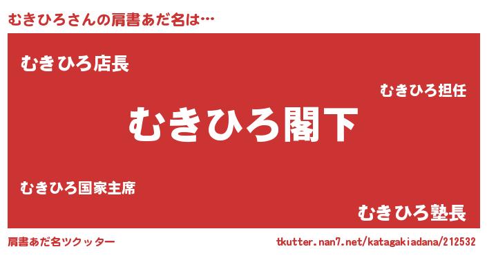 | 男性向けラノベタイトル風あだ名 | 『Re:むきひろから始める異世界生活』 |