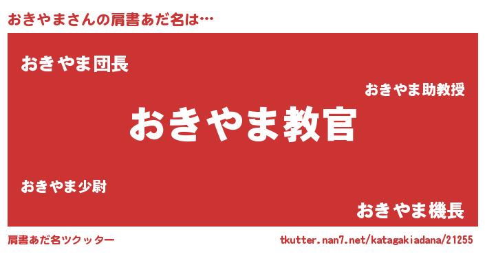 | 女子向けラノベタイトル風あだ名 | 『乙女ゲームの破滅フラグしかない悪役おきやまに転生してしまった…』 |