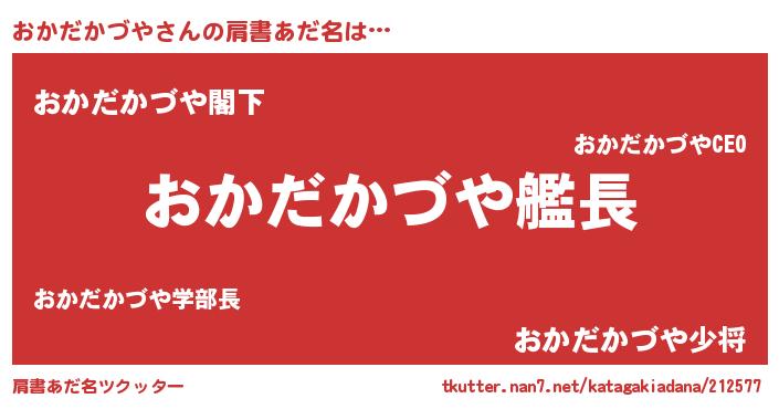 | 男性向けラノベタイトル風あだ名 | 『うちのおかだかづやが世界を掌握している!』 |