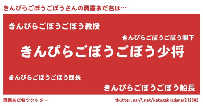 | 女子向けラノベタイトル風あだ名 | 『きんぴらごぼうごぼうの玉の輿計画!』 |