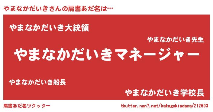 | 男性向けラノベタイトル風あだ名 | 『はたらくやまなかだいきさま!』 |