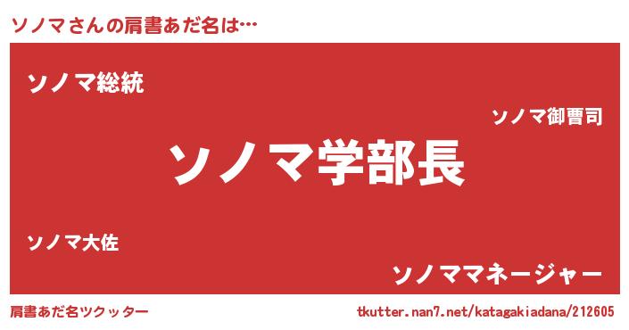 | ヒーロー風カッコイイあだ名 | 『慈愛の使者ソノマ』『スーパーソノマ』 |