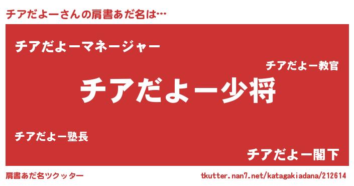 | 男性向けラノベタイトル風あだ名 | 『チアダヨースレイヤー』 |