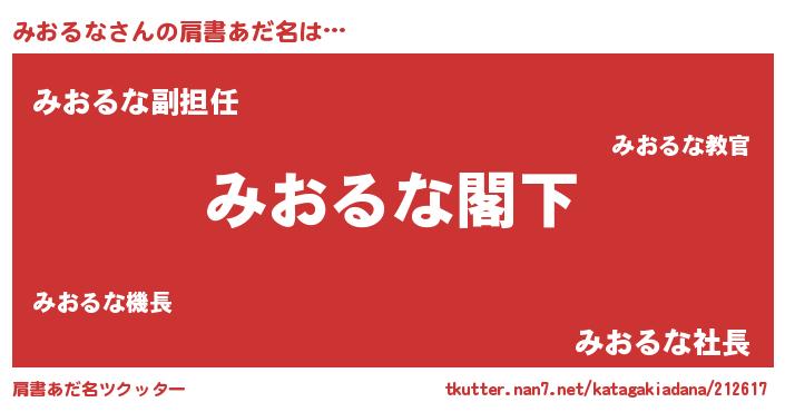 | 女子向けラノベタイトル風あだ名 | 『みおるななんてお断りですっ。』 |
