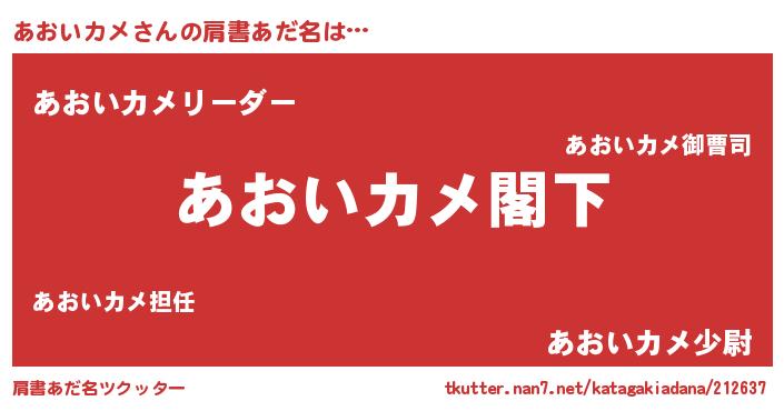 | 女子向けラノベタイトル風あだ名 | 『あおいカメストレイドッグス』 |