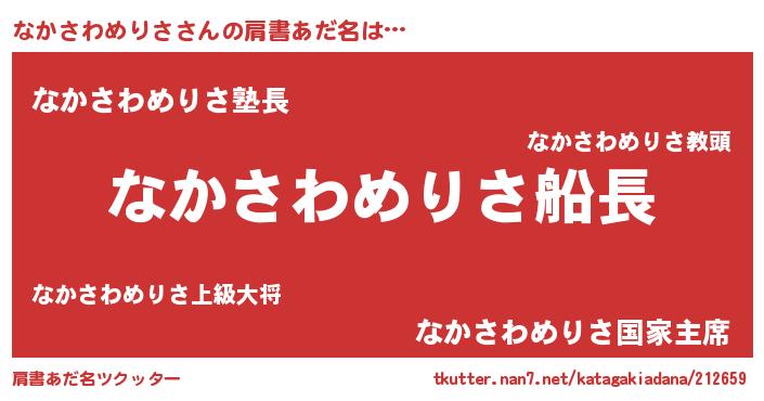 | 意味不明あだ名 | 『とにかく怪しいなかさわめりさ』 |