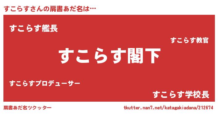 | ヘコむあだ名 | 『すこにゅー』『すこらす(苦笑)』 |