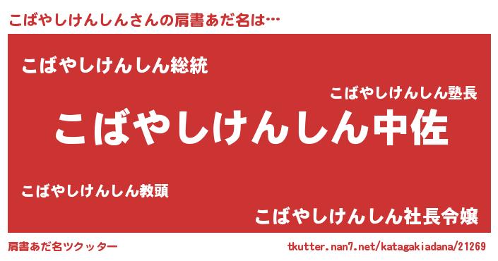 | 料理風あだ名 | 『こばやしけんしんごはん』 |