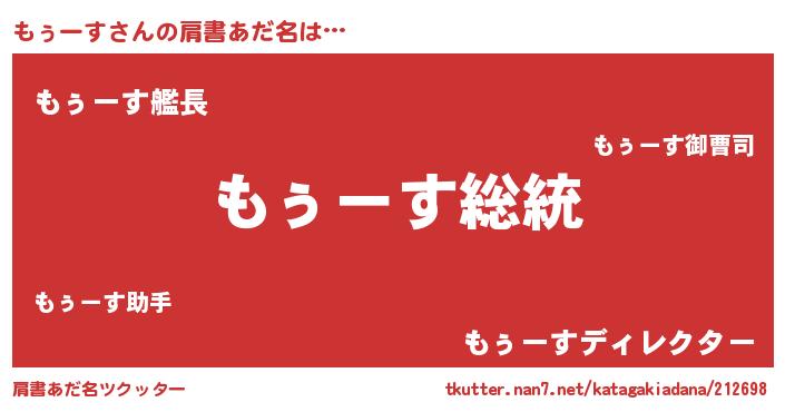 | 男性向けラノベタイトル風あだ名 | 『Re:もぅーすから始める異世界生活』 |