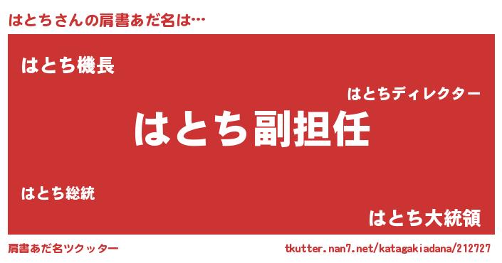 | 男性向けラノベタイトル風あだ名 | 『はとちという概念が存在しない退屈な世界 』 |