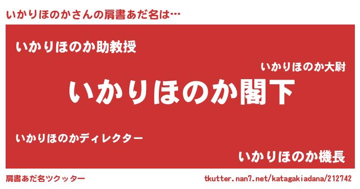 | ヘコむあだ名 | 『いかりほのか(小並感)』『いかふぇ~』 |
