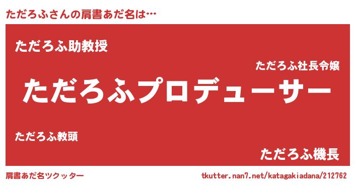 | 男性向けラノベタイトル風あだ名 | 『ただろふに滅ぼされるだけの簡単なお仕事です』 |
