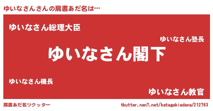 | 意味不明あだ名 | 『自称ゆいなさん』『永久保存ゆいなさん』 |