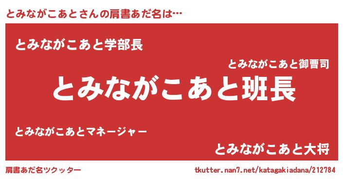 | 男性向けラノベタイトル風あだ名 | 『とみながこあとの嫁は女の子じゃないと思った?』 |