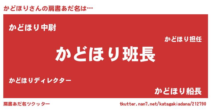 | ヘコむあだ名 | 『かど太郎』『かどほり(笑)』 |
