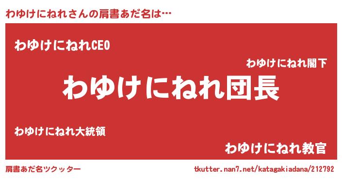 | 女子向けラノベタイトル風あだ名 | 『わゆけにねれ様がみてる』 |