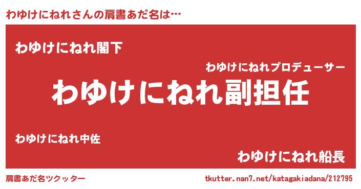 | 男性向けラノベタイトル風あだ名 | 『わゆけにねれという概念が存在しない退屈な世界 』 |