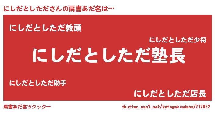| ポケモン風あだ名 | 『ヒニシダトシタダ』『ゼニニシ』 |