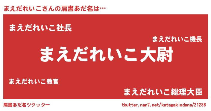 | 料理風あだ名 | 『まえだれいこごはん』 |