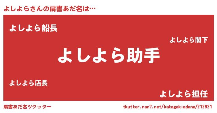 | ヒーロー風カッコイイあだ名 | 『愛の使者よしよら』『ネオヨシヨラ』 |