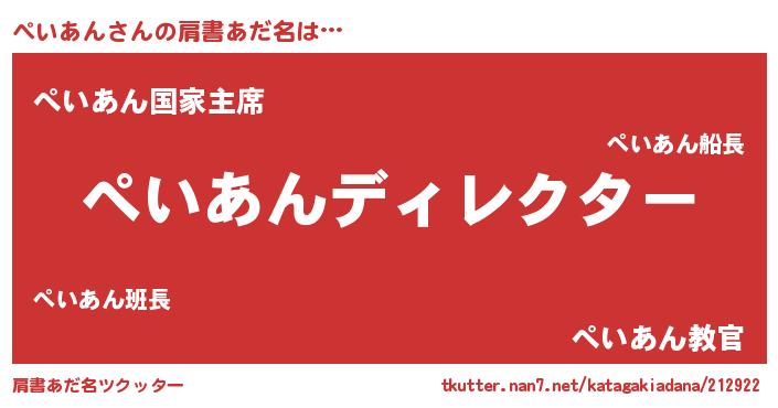 | 欧米人風あだ名 | 『アンジェラ・ぺいあん』 |