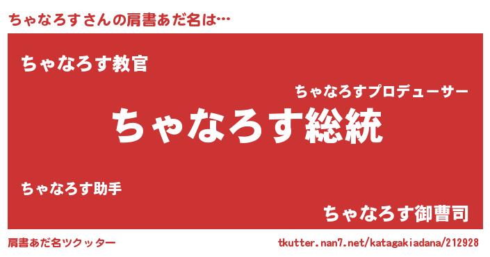 | 女子向けラノベタイトル風あだ名 | 『ちゃなろすなんてお断りですっ。』 |