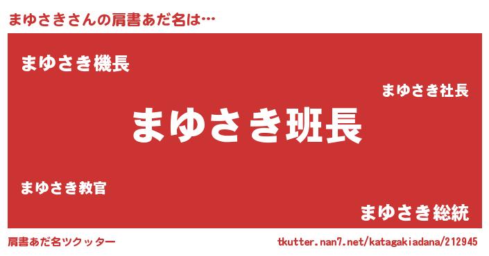 | ヒーロー風カッコイイあだ名 | 『幻影騎士マユ』『究極戦士マユサキ』 |