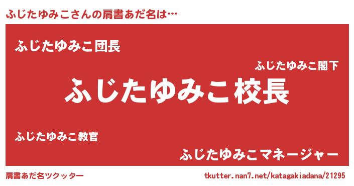 | ヘコむあだ名 | 『ふじたゆみこ(笑)』『ふじお』 |