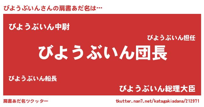 | 意味不明あだ名 | 『とにかく怪しいびようぶいん』 |