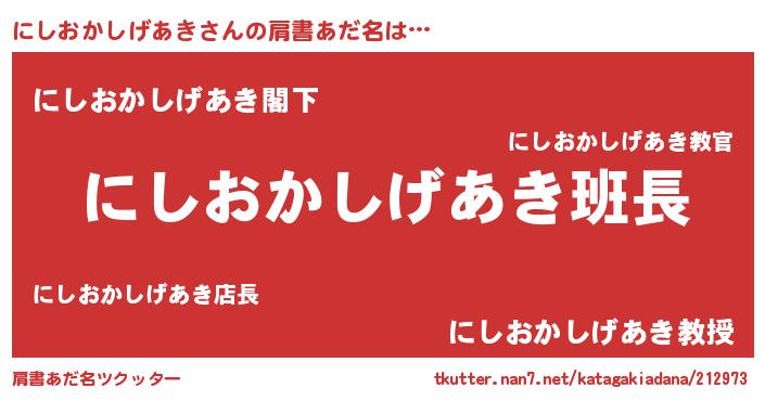 | 女子向けラノベタイトル風あだ名 | 『にしおかしげあきは平凡を望む』 |