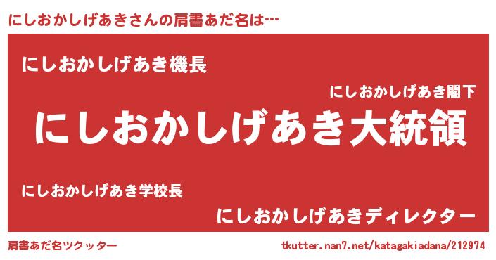 | 意味不明あだ名 | 『にしおかしげあきフォーエバー』 |