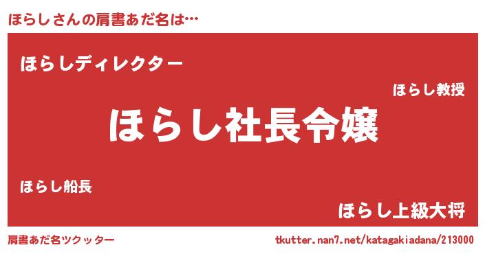 | 欧米人風あだ名 | 『マイケルほらし』『アンジェラ・ほらし』 |