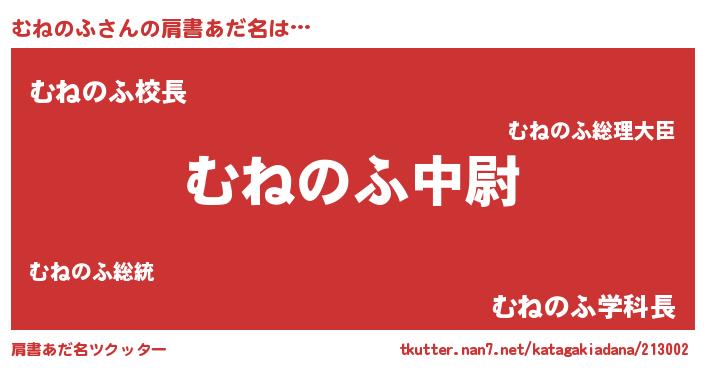 | 意味不明あだ名 | 『しいたけ科むねのふ属』『自称むねのふ』 |