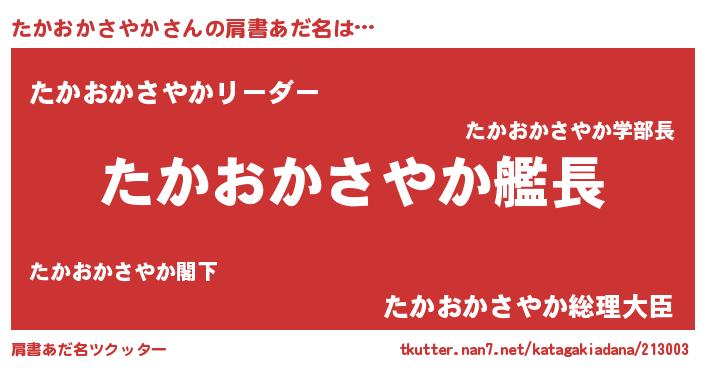 | 伝説のあだ名 | 『解き放たれた僧侶たかおかさやか』 |