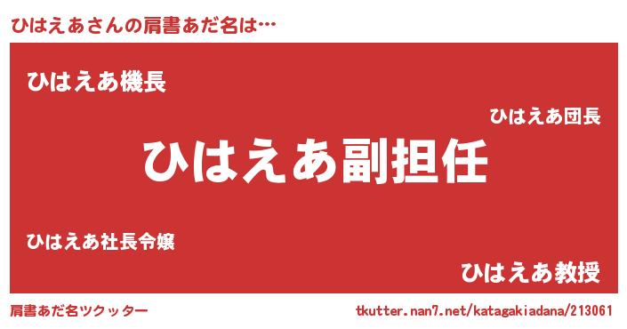 | ヘコむあだ名 | 『ひはえあ(震え声)』『ひはぷりん』 |